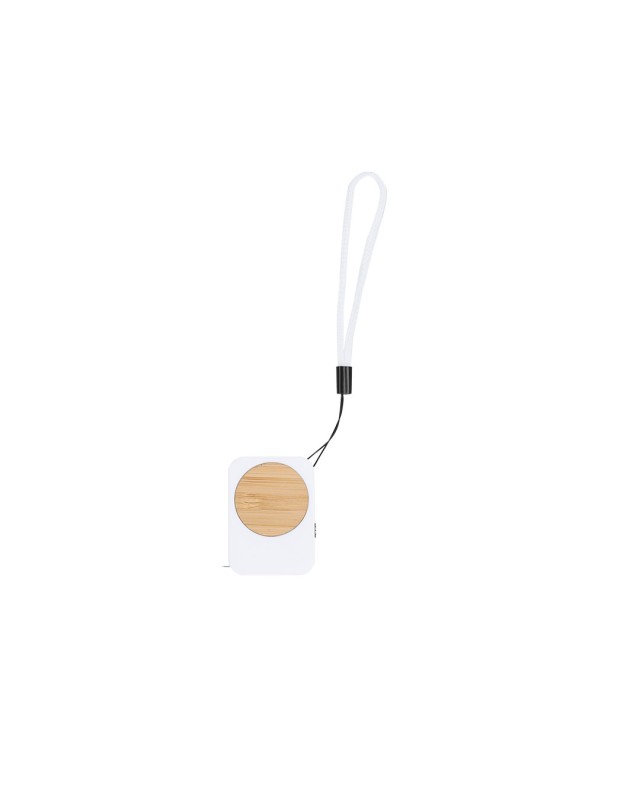 Flessometro di 1 metro in bambù e ABS con luce LED integrata. Nastro metrico con misure in centimetri e pollici marcati in nero, e piedi evidenziati in rosso. Con pulsante di accensione/spegnimento. Include una cinghia di trasporto in poliestere abbinata.Materiali come il Bambù promuovono l'utilizzo di materie prime naturali riducendo le emissioni inquinanti. Inoltre, il bambù proviene da una pianta di grande resistenza e versatilità, con crescita e rigenerazione rapida, rappresentando un'ottima alternativa all'uso di legno tradizionale. - Lunghezza: 5.6 cm - Larghezza: 1.3 cm - Peso: 24 gr