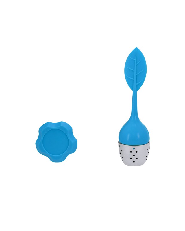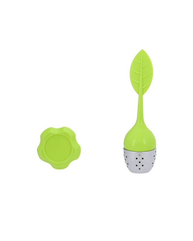 Infusore per tè con design a foglia, realizzato in silicone e acciaio inox. Include base in silicone. - Diametro: 4 cm - Peso: 22 gr