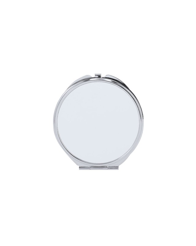 Specchio pieghevole metallico con piastra per sublimazione (non integrata nel prodotto, ideale per stampare e incollare successivamente). Con due specchi interni: 1X e ingrandimento 2X. - Diametro: 7 cm - Peso: 17 gr
