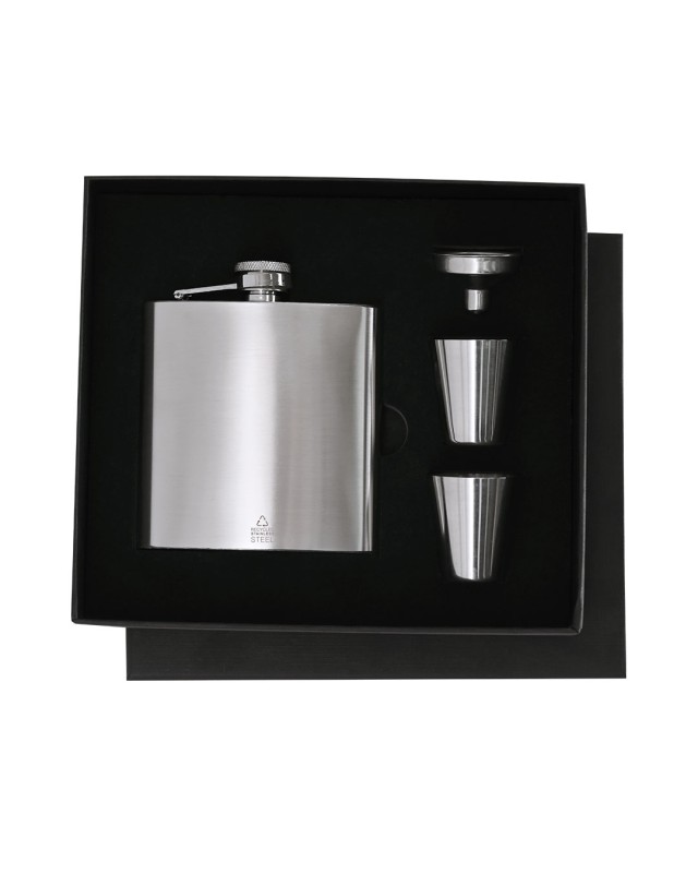 Set di flacone con accessori in acciaio inox riciclato. Include:- Flacone di 175 ml con sistema antigoccia e chiusura a vite per una conservazione sicura e senza perdite.- Due bicchieri misuratori di 30 ml di capacità.- Imbuto dosatore, che facilita il riempimento.Include etichetta di Acciaio Inox Riciclato. Presentato in scatola nera.L'acciaio è uno dei materiali più richiesti e che può essere trovato quasi ovunque, da prodotti di uso quotidiano a grandi costruzioni. Con innumerevoli proprietà, tra cui spiccano durabilità e alto grado di riutilizzo, rendendolo un'alternativa molto apprezzata nelle soluzioni di sostenibilità. Adeguatamente trattato, permette di ottenere nuove risorse di utilizzo infinito. - Lunghezza: 19.4 cm - Larghezza: 17.4 cm - Peso: 280 gr