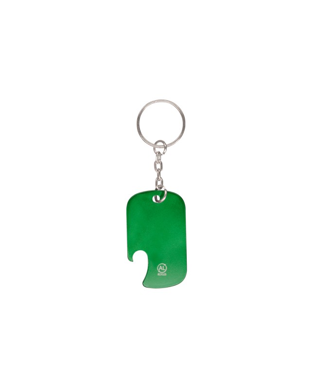 Portachiavi apribottiglie in alluminio riciclato. Include distintivo in alluminio riciclato.L'alluminio riciclato è un materiale con possibilità di riciclaggio quasi infinite, senza perdere le sue proprietà originali e consumando meno energia in questo processo.Certificazione GRS (Global Recycled Standard / Standard di Riciclaggio Globale), che garantisce l'origine riciclata del materiale usato per fabbricare il prodotto. - Lunghezza: 3 cm - Larghezza: 0.2 cm - Peso: 9 gr