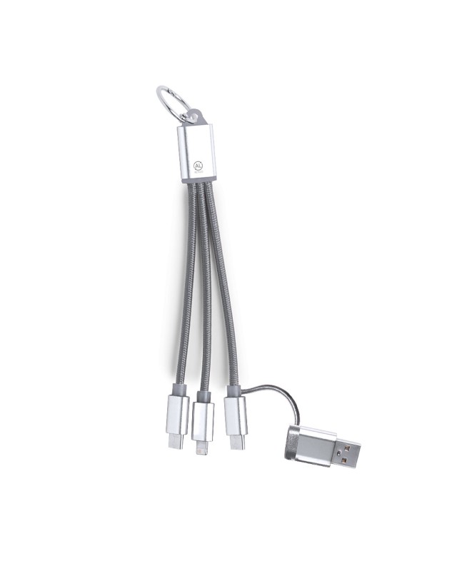 Cavo caricatore in Alluminio Riciclato. Con connessione di ingresso duale di tipo C/USB e uscite di tipo C, Lightning e Micro USB. Include distintivo di Alluminio Riciclato.L'alluminio riciclato è un materiale con possibilità di riciclaggio quasi infinite, senza perdere le sue proprietà originali e consumando meno energia in questo processo.Certificazione GRS (Global Recycled Standard / Standard di Riciclaggio Globale), che garantisce l'origine riciclata del materiale usato per fabbricare il prodotto.Connessione Micro USB, di tipo C e Lightning 5V CC 2.4A - Lunghezza: 2.2 cm - Larghezza: 0.8 cm - Peso: 22 gr