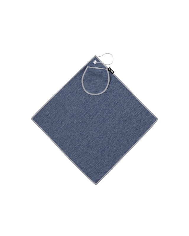 Asciugamano da golf realizzato in RPET con doppia texture: morbida finitura bicolore su un lato e texture di filo uniforme dall'altro, per adattarsi a diverse esigenze di pulizia. Il suo design include una tasca per palline da golf coordinata. Con anello rinforzato e moschettone di attacco. Include il distintivo RPET sull'etichetta.Il materiale RPET è realizzato con plastica riciclata, per promuovere il riutilizzo dei rifiuti plastici e contribuire alla sostenibilità del pianeta. - Lunghezza: 31 cm - Peso: 44 gr