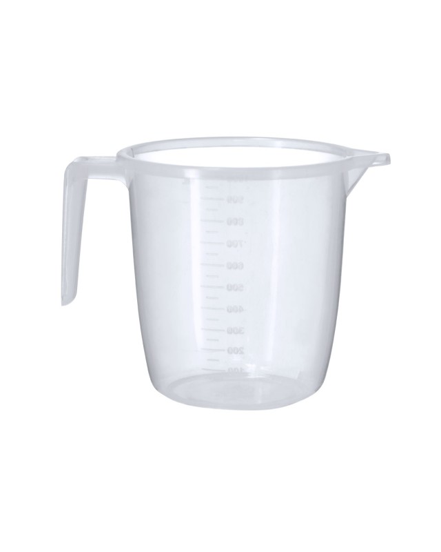 Bicchiere misuratore da 1L realizzato principalmente in resistente PP trasparente con maniglia. Con misuratore laterale in segmenti da 100 ml e 50 ml. Include beccuccio sul bordo per evitare schizzi. - Diametro: 12.1 cm - Peso: 50 gr