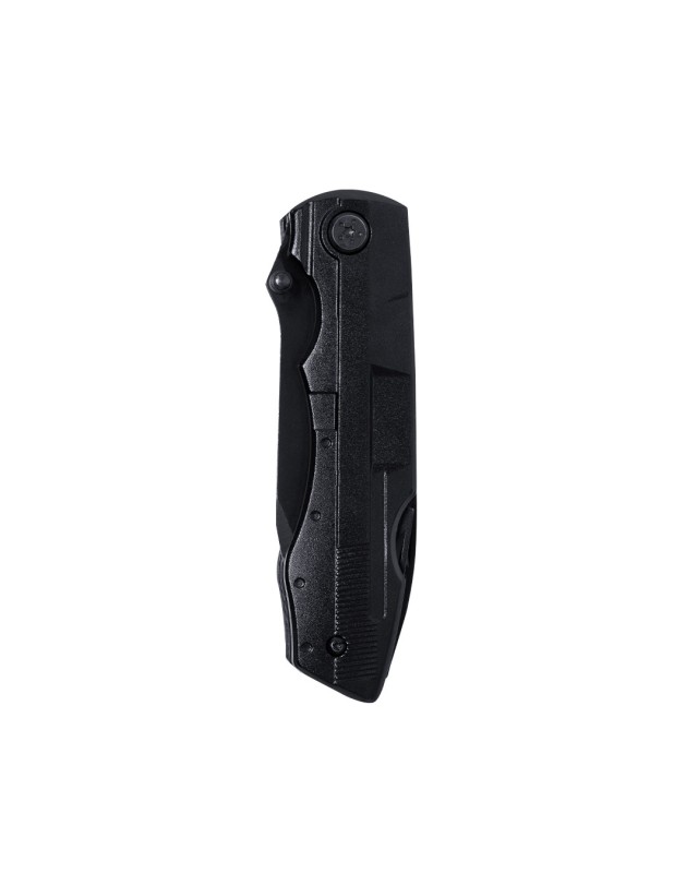 Coltello multiuso con finitura nera in acciaio inox e resistente impugnatura coordinata in alluminio. Design pieghevole e dimensioni compatte. Include 10 funzioni: - Cacciavite con punte multiple- Coltello a lama liscia e seghettata-Apribottiglie-Apriscatole-Pinze con tagliafiliPresentato in un pratico astuccio in poliestere coordinato con accessorio per cintura. - Lunghezza: 11.2 cm - Larghezza: 2.3 cm - Peso: 202 gr