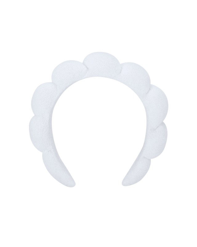 Fascia per capelli, realizzata in morbido poliestere e rivestita di spugna per maggiore comodità. Progettata con tessuto arricciato, ideale per facilitare la routine di lavaggio del viso. - Lunghezza: 19 cm - Larghezza: 3.5 cm - Peso: 55 gr