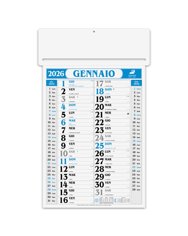 tecnica di stampa consigliata: adesivo digitale - serigrafica - Dimensioni: calendario: cm 34x53,5 ca