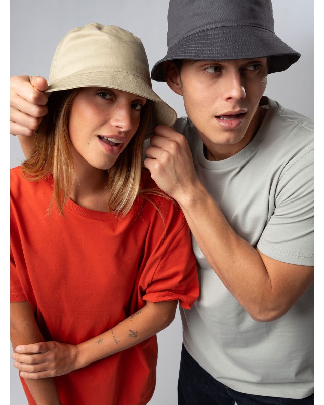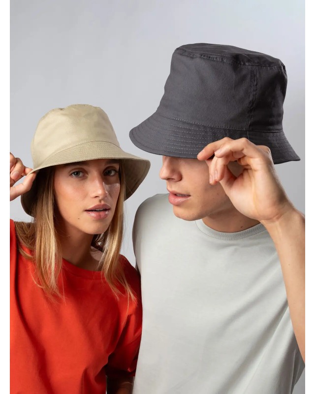 100% cotone twill. Cappello modello pescatore realizzato in tessuto morbido per un look casual e confortevole. Privo di occhielli per un design essenziale, è dotato di una fascia parasudore in 100% cotone che garantisce freschezza e comfort per tutto il giorno. 8 cuciture a righe sulla falda per un tocco di stile e robustezza. Disponibile in taglia unica. Etichetta removibile.