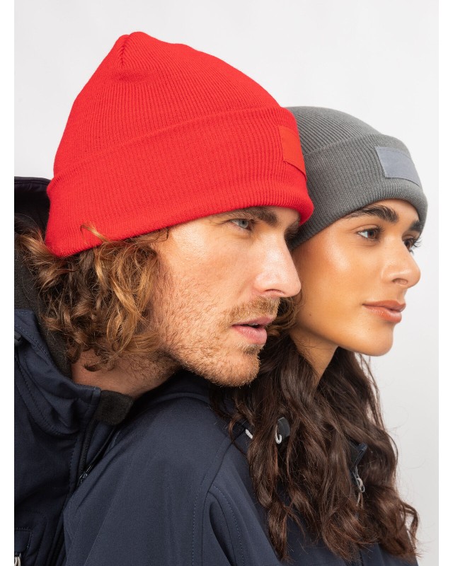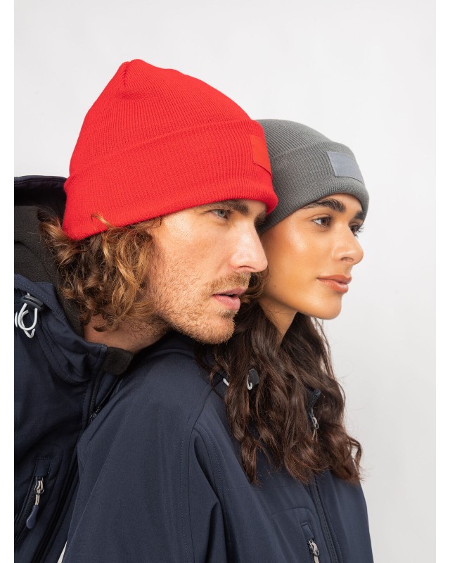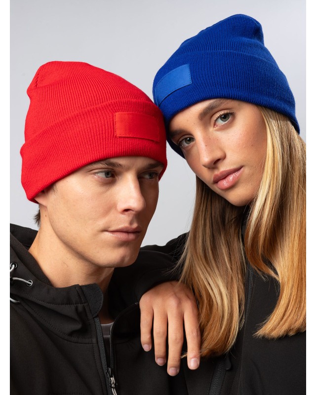 100% poliestere. Cuffia in maglia a singolo strato, dal design semplice e versatile, dotata di inserto per personalizzazione (6,5 cm x 3 cm), ideale per loghi o scritte. Taglia unica per un'ottima vestibilità. Etichetta removibile per un look pulito e personalizzabile.