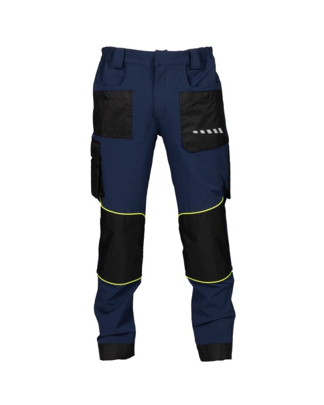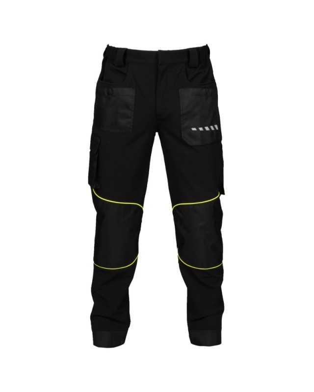 - Tessuto antistrappo sulle ginocchia con piping giallo fluo