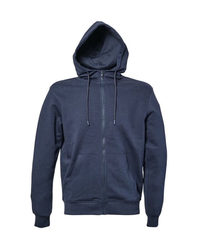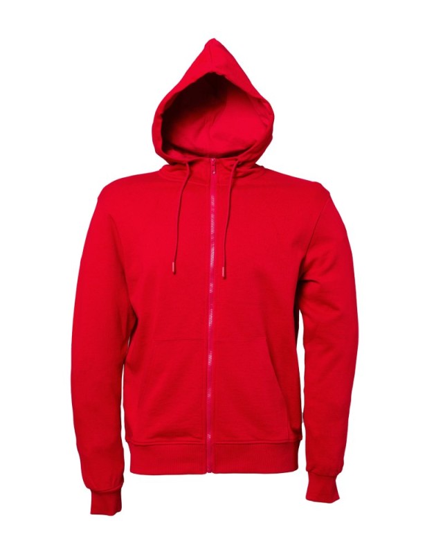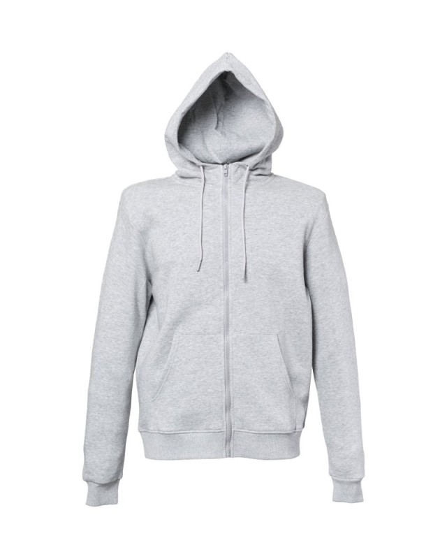 Felpa zip lunga con cappuccio, cordini e stopper in pvc in tinta