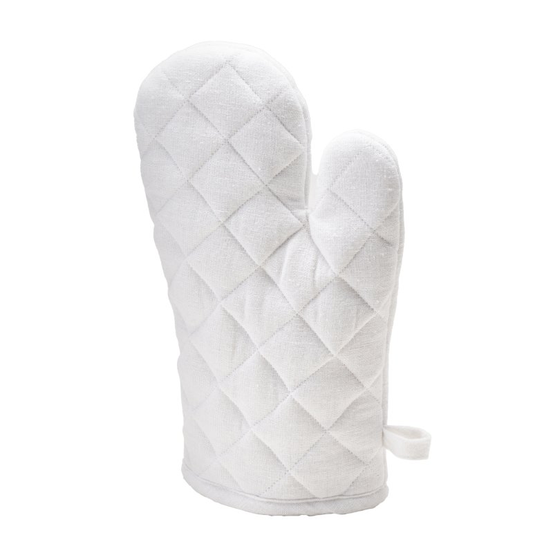 Guanto da forno in cotone riciclato con asola per aggancio, un lato trapuntato e l'altro liscio appositamente progettato per la stampa Materiale: Recycled cotton + recycled polyester Dimensioni: 28 X 18 CM