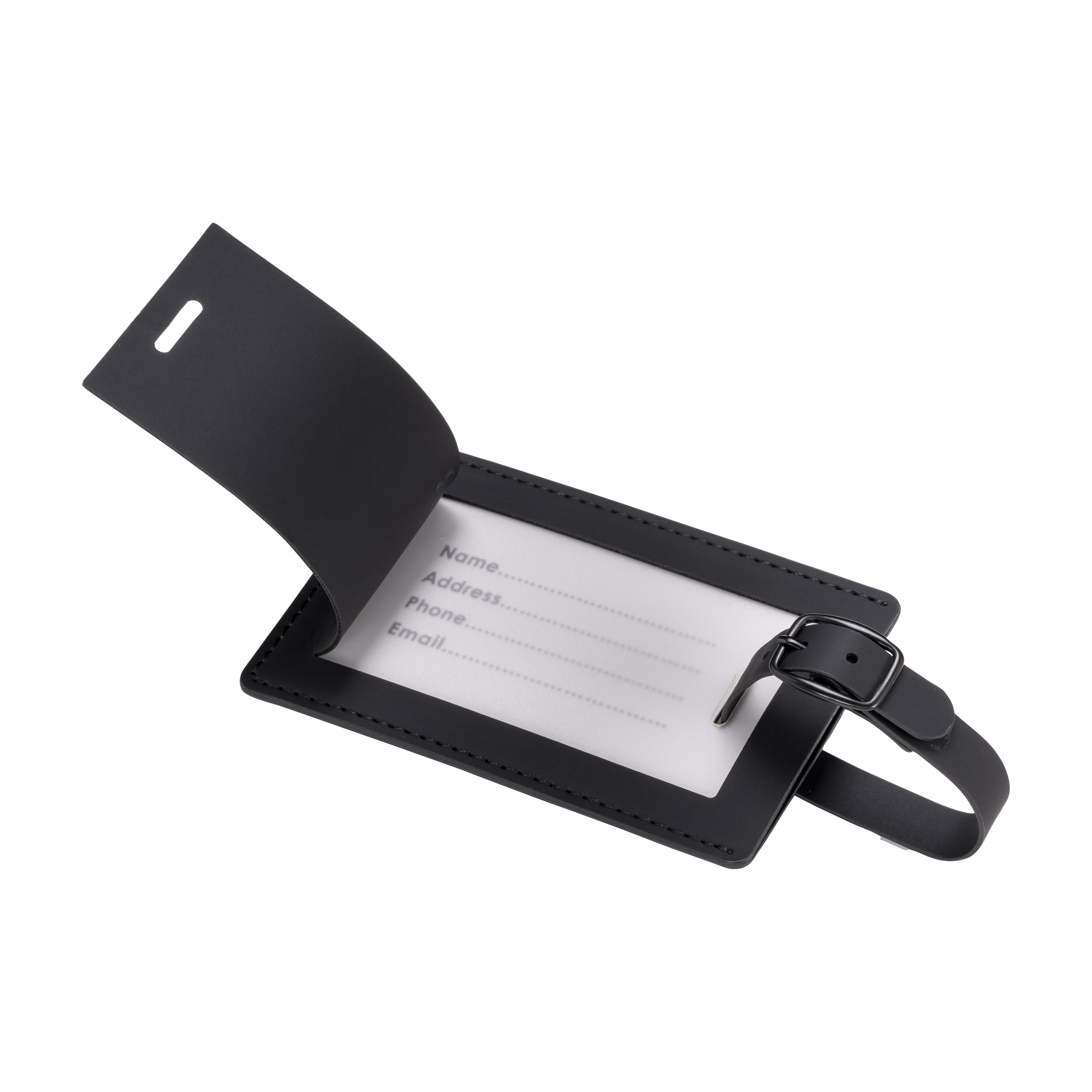 ETICHETTA PER BAGAGLI IN SOFT PU. CON CARTONCINO INTERNO PER NOME E DATI DI CONTATTO DM25403