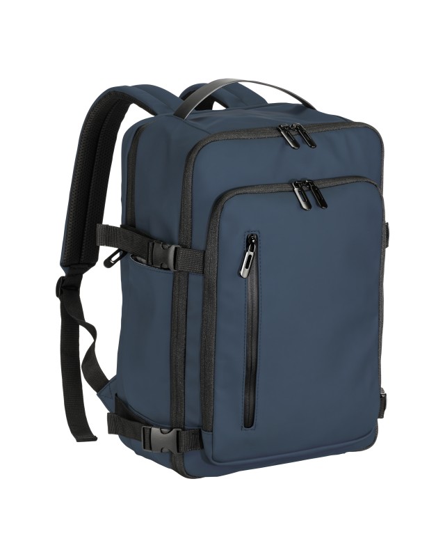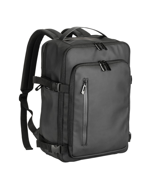 Zaino porta pc (15) in soft PU water resistant. Ampio scomparto principale e tasca posteriore imbottita per notebook. Tasca frontale con zip. Schienale e spallacci imbottiti con materiale traspirante. Cinghie di sicurezza. Sistema aggancio ai trolley Materiale: Pu Dimensioni: 25X40X20-LT 20