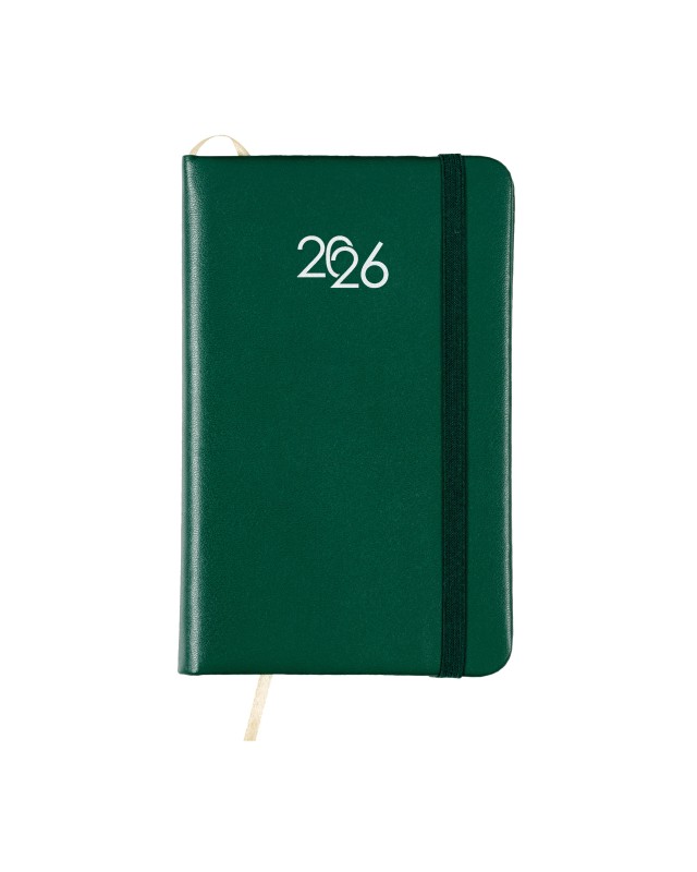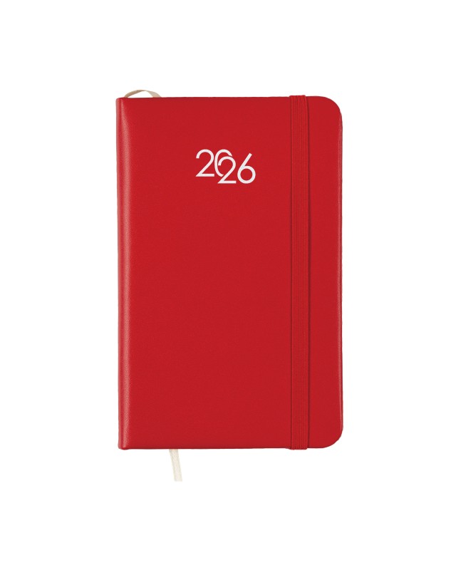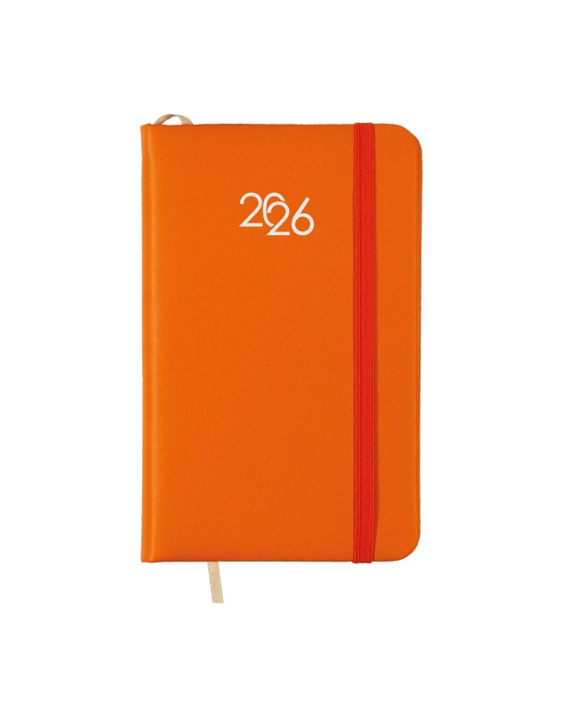 Agenda tascabile settimanale 2026 con copertina rigida in PU. Con elastico per la chiusura. 12 mesi. 64 pagine in carta bianca da 70 g/m2. Copertina personalizzabile. Materiale: Pu Dimensioni: 14 X 9 CM Grammatura: 64 PAGES 70GSM WHITE PAPER