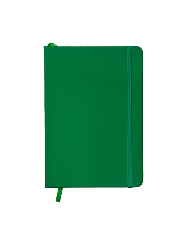 Quaderno con copertina in PU. Fogli puntinati su carta bianca (80 pagine), elastico di chiusura e segnalibro in raso in tinta Materiale: Pu + paper Dimensioni: 15 X 21 CM Grammatura: PAPER 70GR