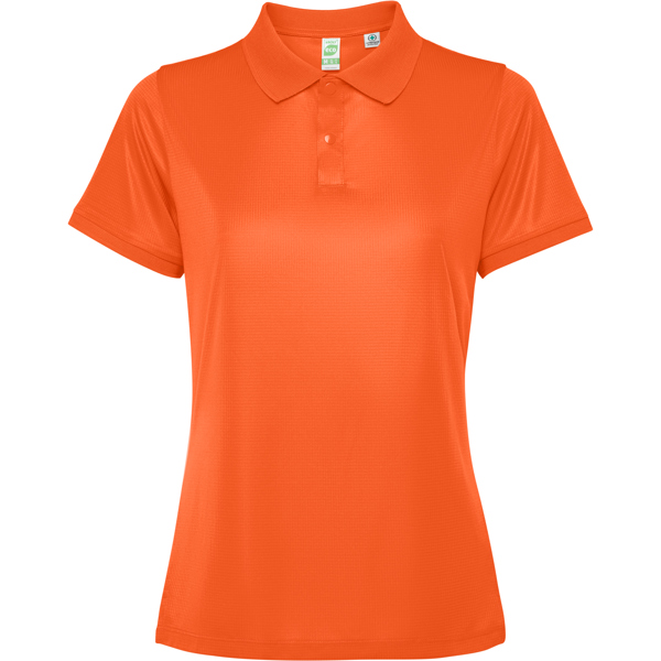 Polo tecnica, traspirante e aderente. Roly Control Dry. Anti-batterico. Cuciture laterali in avanti con spacchi. Colletto e polsini a coste 1x1 tono su tono. Abbottonatura con bottoni a pressione tono su tono. Nastratura del colletto tono su tono. Certificazione GRS. - Genere: Donna - Composizione: 100% poliestere riciclato, waffle interlock, 125 g/m² - * Duo* Etiqueta removible* Antibacterial* Control Dry* Tejido Transpirable* Tejido StretchProducto con certificado 139218-GRS - Misure: 44cm/62,5cm