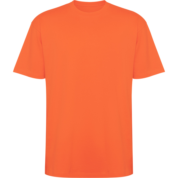 T-shirt oversize spessa a maniche corte. Girocollo e polsini ampi a coste 2x1. Scollo nastrato in tessuto coordinato. Doppie cuciture ampie su orlo e maniche. Capo dalla texture e struttura spessa grazie alla costruzione in tessuto. - Genere: Unisex - Composizione: 100% cotone pesante, 210 g/m ² - * Etiqueta removible - Misure: 51cm/72cm