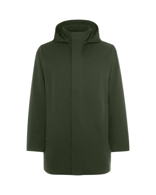 Parka trapuntato a 3/4 con collo alto e cappuccio rimovibile con zip. Zip frontale bidirezionale coperta da patta con chiusura con bottone a pressione. Due tasche laterali con patta e chiusura a bottone a pressione. Tasca interna con chiusura a zip invisibile. Punto di accesso sul retro per la rilavorazione. - Genere: Unisex - Composizione: Tessuto principale: 100% poliestere laminato Fodera in TPU: 100% poliammide- Imbottitura: 100% poliestere, 380 g/m ²