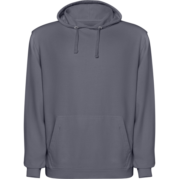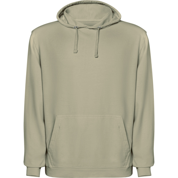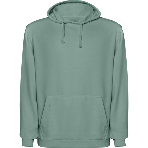 Felpa unisex con cappuccio in cotone non garzato con effetto lavato. Tasca a marsupio. Polsini e vita a coste 2x1 con elastan. Coulisse piatta tono su tono con occhielli in metallo. Cuciture nastrate in tessuto coordinato. - Genere: Unisex - Composizione: 100% cotone 250 g/m ² - Misure: 51cm/65cm
