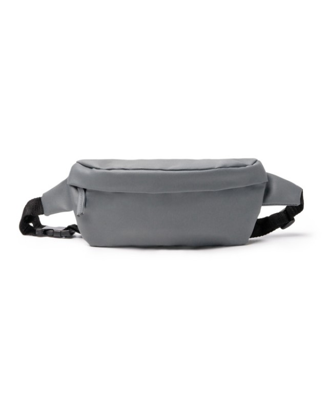 Marsupio in pelle PU e RPET 600D soft touch. Presenta uno scomparto principale con chiusura a zip e tiralampo coordinato. Dispone inoltre di una cinghia regolabile con i lati rinforzati e di una fibbia per una vestibilità sicura e comoda. - Composizione: Pelle PU e RPET 600D - Misure: 27cm/13cm/7,5cm