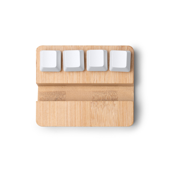 Supporto per smartphone in bambù con funzione antistress. Il suo design presenta quattro tasti che è possibile premere e utilizzare come antistress. - Composizione: Bambù - Misure: 8,4cm/1,7cm/7cm