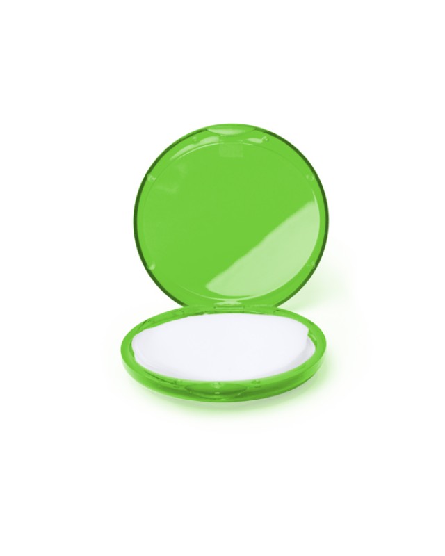 Astuccio con 25 foglietti di sapone profumato. Un'opzione perfetta da portare in borsa o nel necessaire per ogni occasione. Con un po' d'acqua, i foglietti si trasformano in schiuma per consentire di lavarsi le mani ovunque. Ideale per le gite o i viaggi. - Composizione: Plastica - Misure: 1cm/6,5Ø