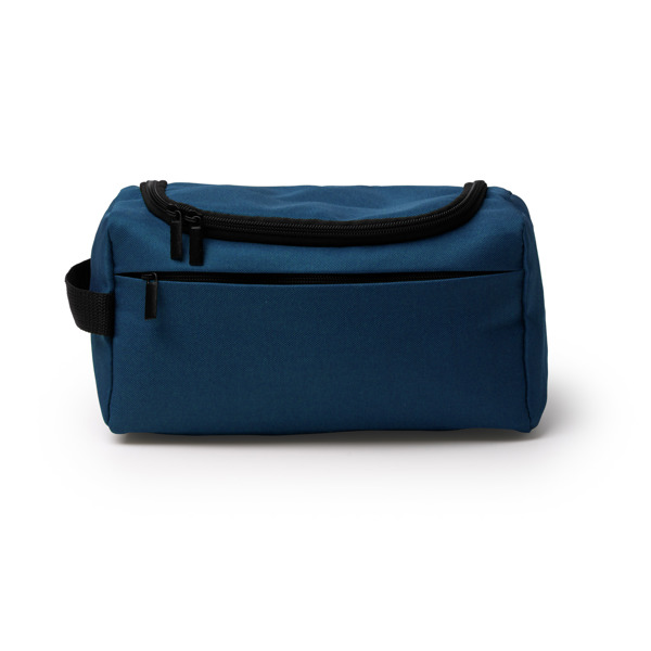 Necessaire in RPET 600D. Lo scomparto principale presenta un'apertura superiore con chiusura a zip che include una tasca interna in mesh con chiusura a zip. All'esterno è dotato di una tasca frontale con zip invisibile che offre ulteriore spazio per riporre gli oggetti. Dispone di un manico per il trasporto sul lato per un uso più confortevole. - Composizione: RPET 600D - Misure: 24cm/14cm/12cm