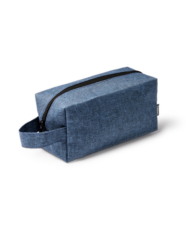 Necessaire realizzato in RPET 600D con chiusura a zip e pratico manico per il trasporto. - Composizione: RPET 600D - Misure: 20cm/9,8cm/8,3cm
