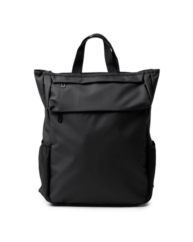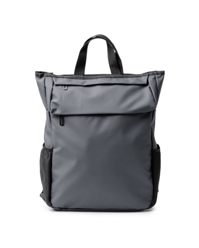 Zaino realizzato in pelle PU con chiusura a zip. Ampio scomparto interno con tasca removibile per laptop 15". Patta esterna con doppia tasca con chiusura a zip e 2 tasche laterali a rete. Manici e schienale imbottiti. Capacità: 20L. - Composizione: Pelle PU - Misure: 30cm/42cm/14cm