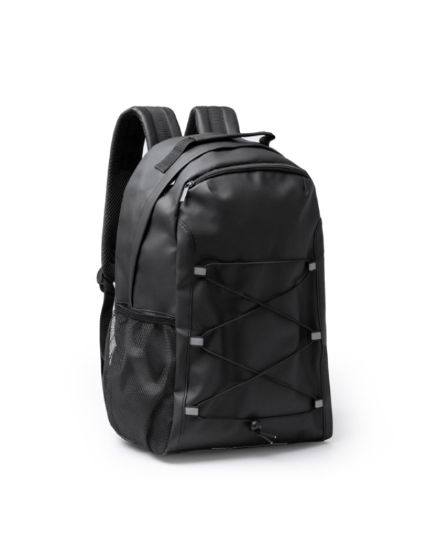 Zaino realizzato in pelle PU con dettagli riflettenti. Scomparto principale di grandi dimensioni con tasca interna per laptop da 17". Parte anteriore con cordoncini elastici e tasca laterale. Maniglie regolabili. Schienale e manici imbottiti. Misura: XL - Composizione: Pelle PU - Misure: 17cm/45cm/29cm
