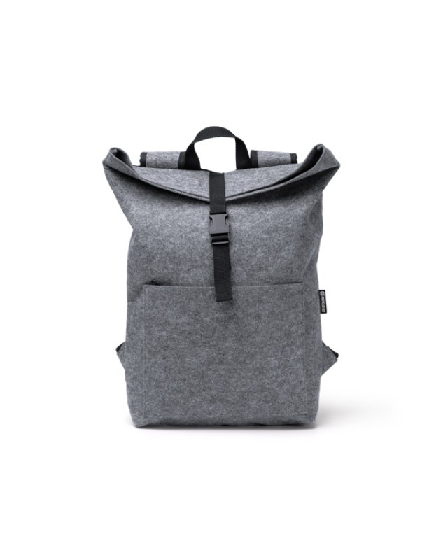 Zaino in feltro riciclato con patta. È dotato di moschettone per la chiusura dello scomparto principale, tasca frontale per riporre piccoli effetti personali e maniglie regolabili. - Composizione: Feltro riciclato - Misure: 39cm/50cm/11cm