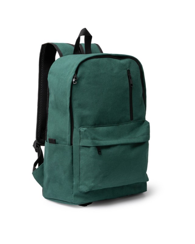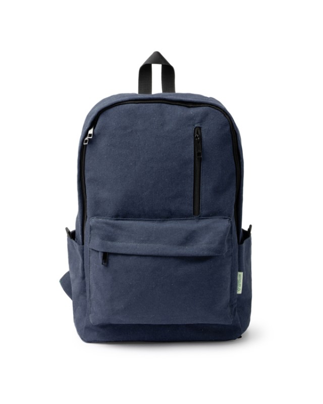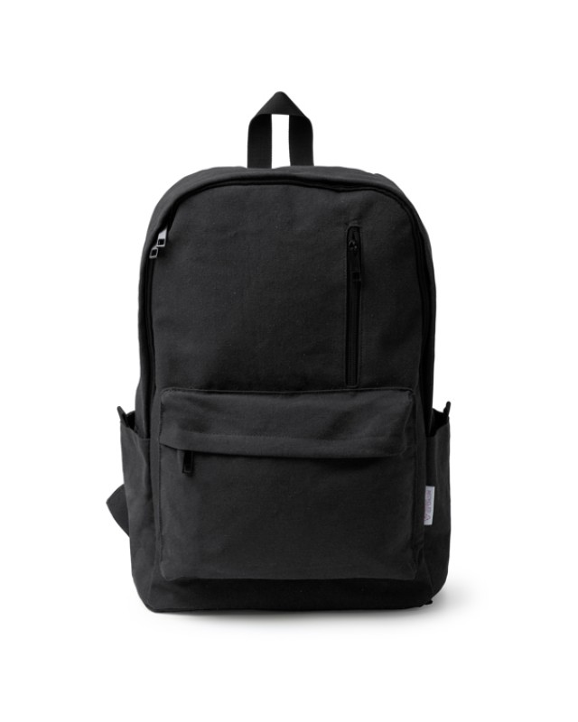 Zaino in cotone riciclato da 330 g/m². Scomparto principale con tasca interna per laptop da 15". 2 tasche esterne con chiusura a zip e 2 tasche laterali. Manici e schienale imbottiti. Capacità: 20L. - Composizione: Cotone riciclato - Misure: 30cm/46cm/14cm