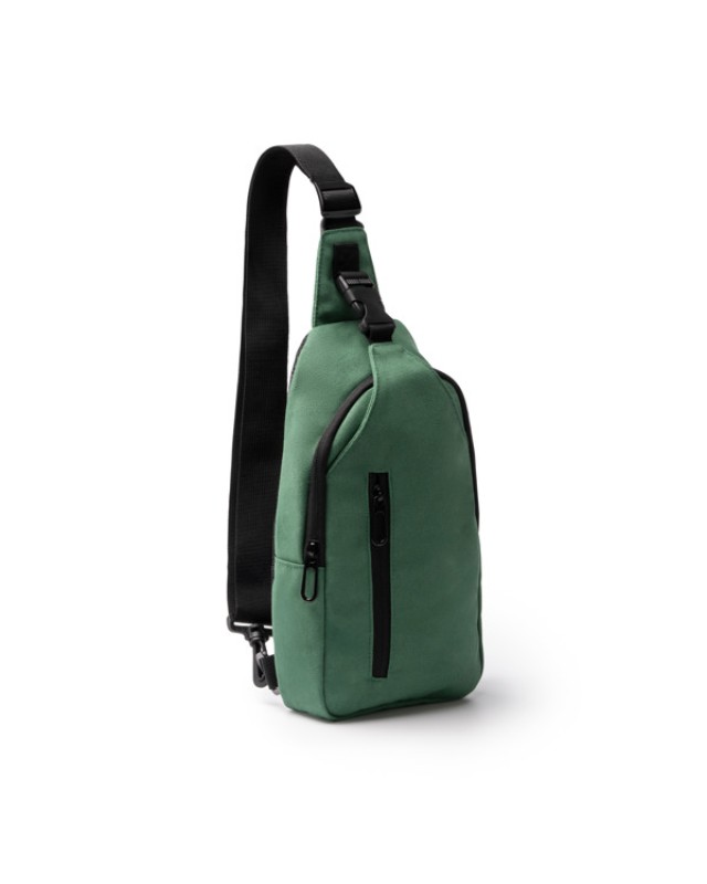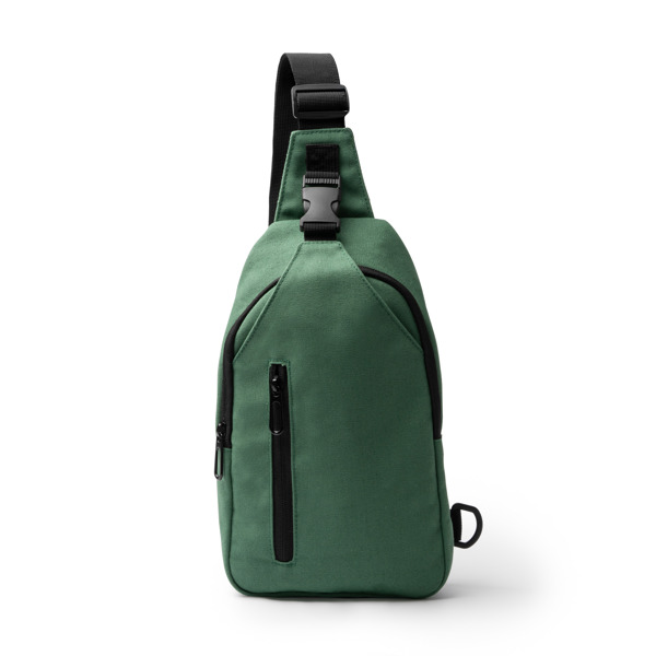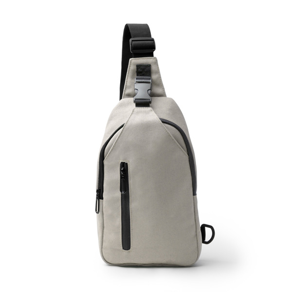 Borsa a tracolla in tela di cotone riciclato. Dispone di una tracolla regolabile con moschettone e di punti di ancoraggio alle due estremità per un maggiore comfort durante l'uso. Include uno scomparto principale con chiusura a zip e due tasche esterne più piccole, una con chiusura a zip e l'altra con fibbia. Schienale imbottito. - Composizione: Cotone riciclato - Misure: 30cm/6cm