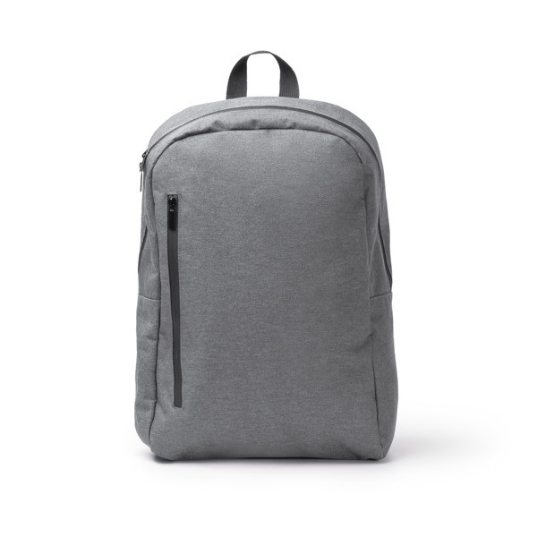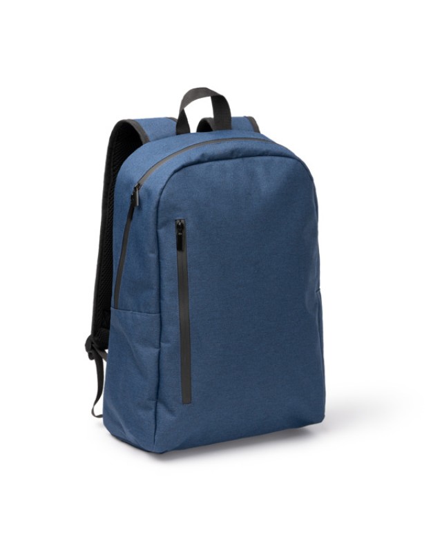 Zaino in RPET 300D con rivestimento in PVC che lo rende resistente ai liquidi. Anche le zip sono impermeabili. Presenta uno scomparto principale con doppia chiusura a zip e una tasca interna progettata per trasportare laptop fino a 15", oltre ad altre due tasche più piccole per trasportare altri oggetti. All'esterno è dotato di un'ampia tasca frontale con chiusura a zip, anch'essa impermeabile, e di due scomparti laterali per le bottiglie. I manici sono catarifrangenti. Schienale e manici imbottiti per un maggiore comfort. Include anche una cinghia per trolley per una maggiore versatilità. - Composizione: RPET 300D e PVC - Misure: 42cm/42cm/13cm