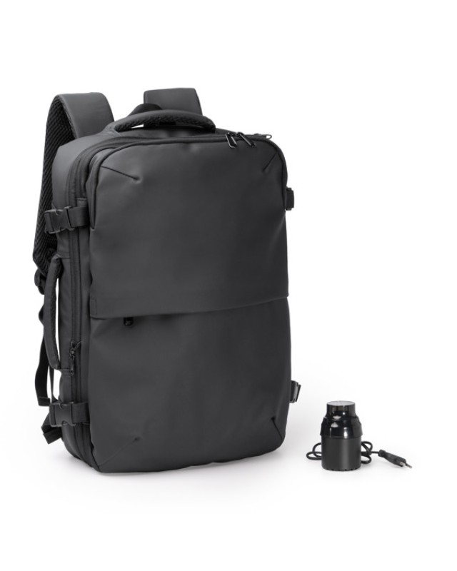 Zaino allungabile in pelle PU con compressione sottovuoto grazie alla pompa elettrica da 30W. Presenta uno scomparto principale con due tasche indipendenti all'interno, entrambe con chiusura a zip, realizzate in mesh. All'esterno è dotato di una tasca superiore con scomparto per laptop fino a 17"e una tasca nascosta con chiusura a zip. Include fibbie di regolazione sui fianchi e cinghia per trolley. Schienale e bretelle imbottiti. - Composizione: Pelle PU - Misure: 30,5cm/44cm/21cm