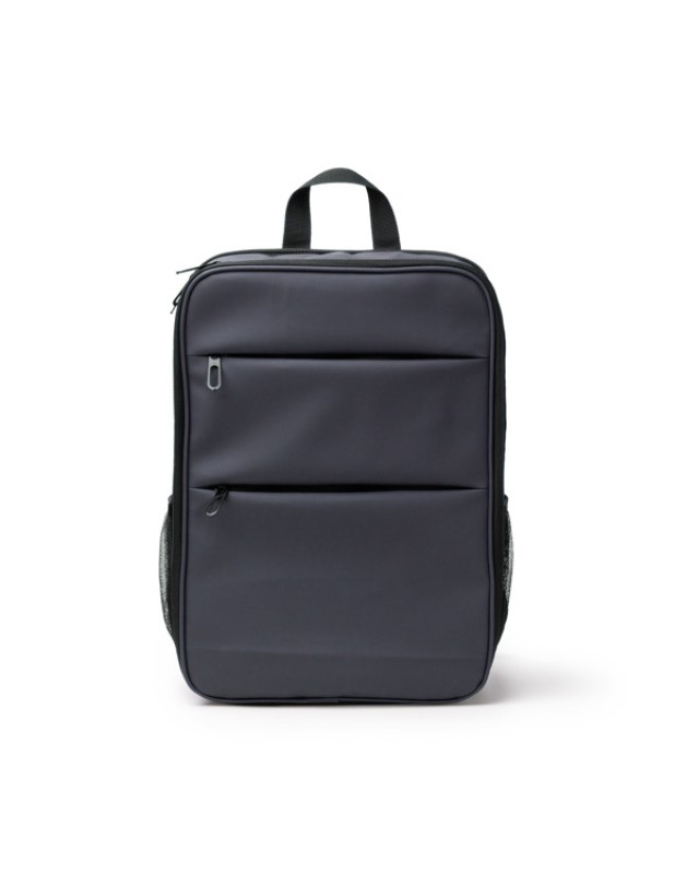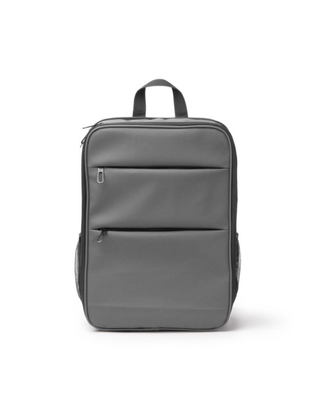 Zaino in pelle PU con due scomparti, entrambi con doppia chiusura a zip. Uno è imbottito, appositamente progettato per laptop fino a 15". L'altro scomparto, estensibile tramite zip, ha una tasca con elastico regolabile appositamente progettata per trasportare altri dispositivi. Presenta due tasche anteriori esterne con chiusura a zip. Incorpora due tasche laterali in mesh con elastico regolabile per trasportare bottiglie o fiaschette. Grazie alle sue caratteristiche e ai manici e schienale imbottiti, è un'opzione comoda e versatile per trasportare i tuoi effetti personali ovunque. - Composizione: Pelle PU - Misure: 27cm/38,5cm/15cm