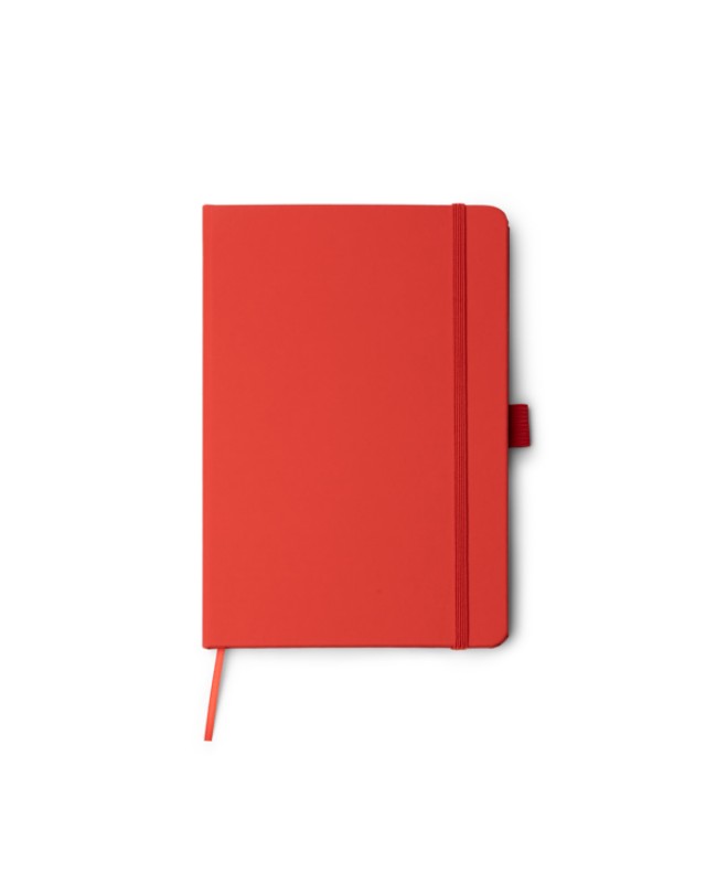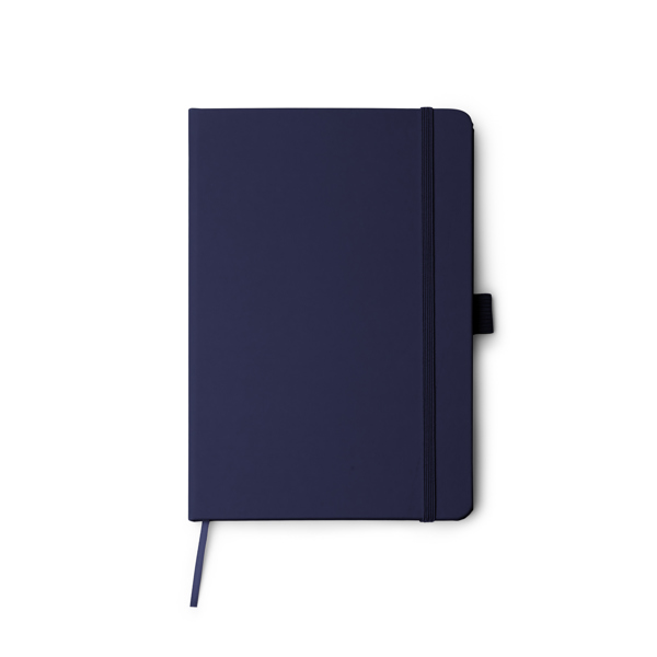 Blocco note A5 in PU riciclato con fogli bianchi e supporto magnetico per smartphone e penna. È dotato di segnalibro, chiusura con elastico e portapenne laterale, il cui colore si abbina a quello del quaderno. - Composizione: PU riciclato - Misure: 14,5cm/21cm/1,5cm