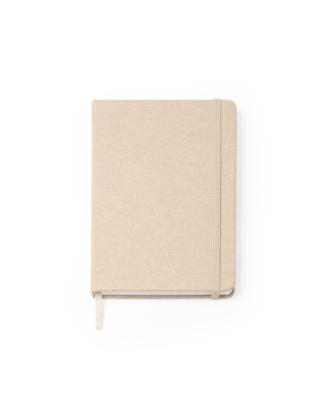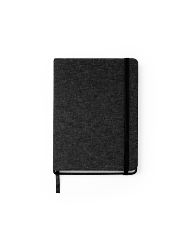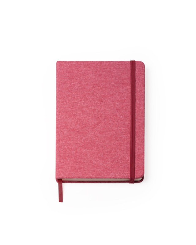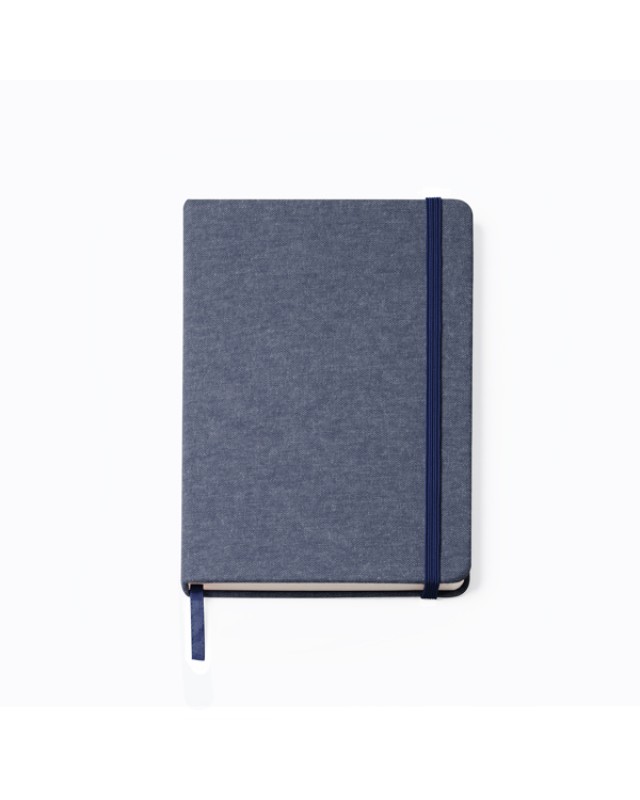 Quaderno A5 con copertina in cotone. Segnapagina ed elastico. 100 fogli bianchi. - Composizione: Coperchio in cotone. - Misure: 14cm/21cm/1,5cm