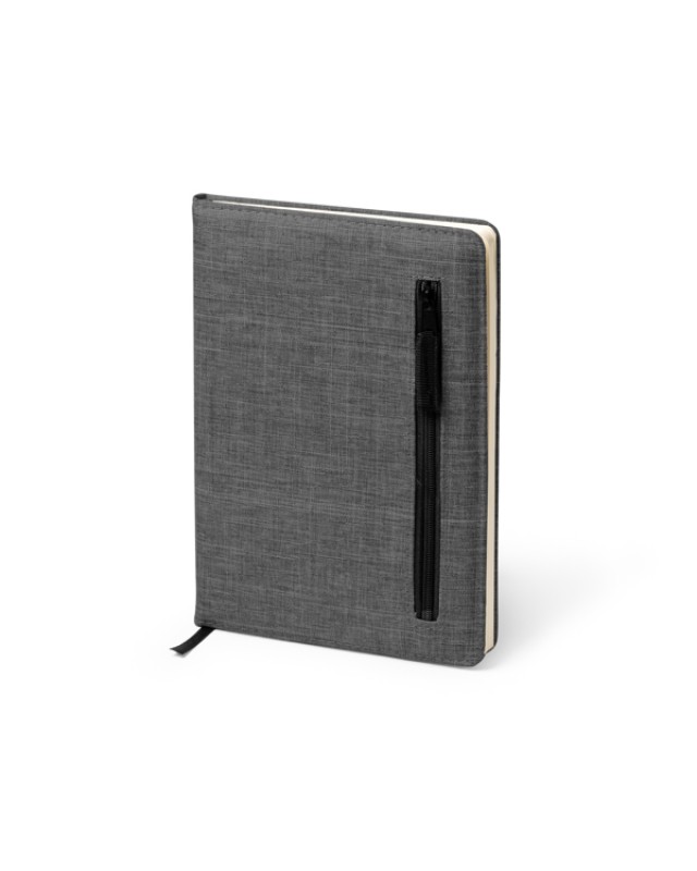 Quaderno A5 realizzato in RPET. Tasca esterna per accessori con chiusura a cerniera Include segnalibro. 80 fogli a righi. - Composizione: RPET - Misure: 14,5cm/21cm
