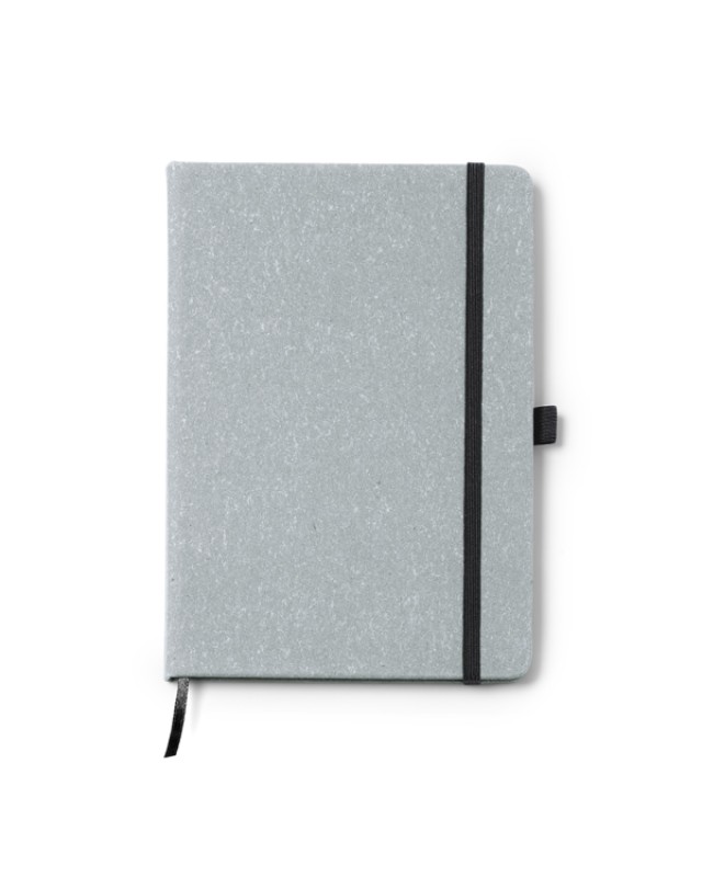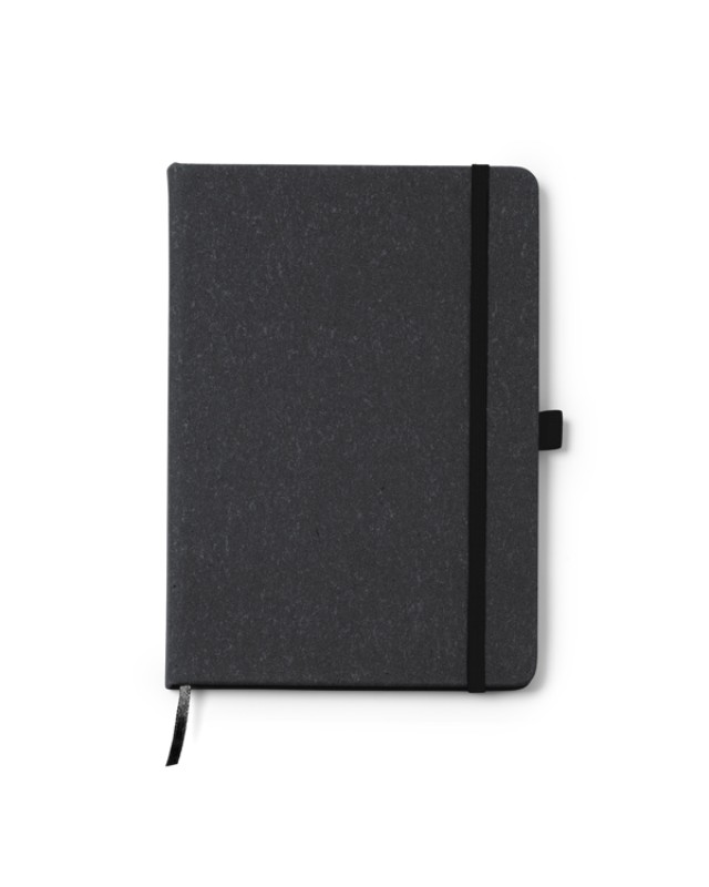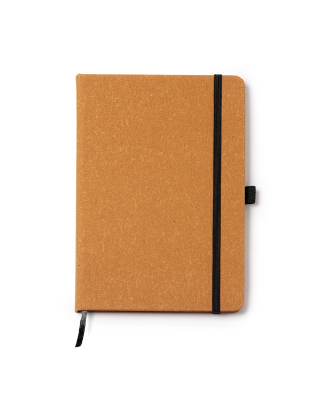 Quaderno A5 con copertina rigida in pelle riciclata. Segnalibro ed elastico. 100 fogli a righe. - Composizione: Pelle riciclata - Misure: 14,5cm/21cm/1,4cm