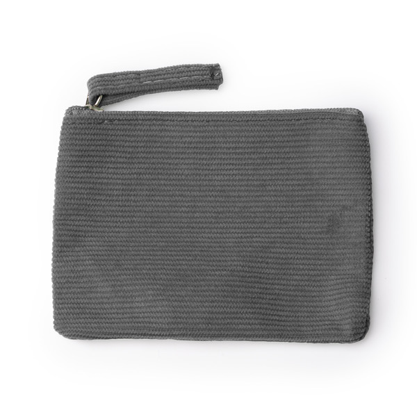 Borsellino realizzato in velluto a coste con zip in tinta. - Composizione: Velluto a coste - Misure: 8cm/11cm/1cm