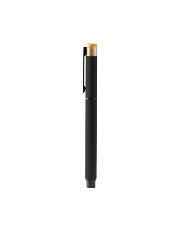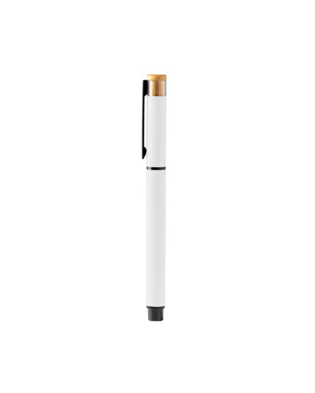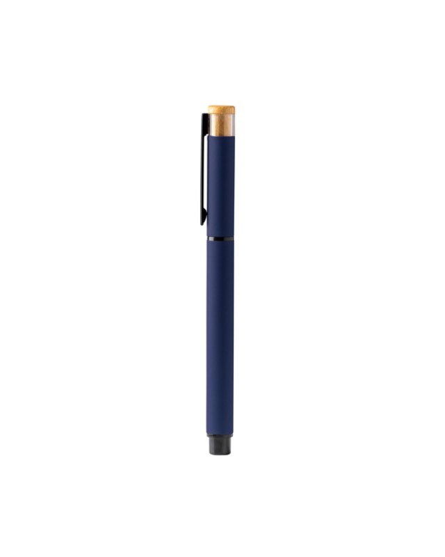 Penna a sfera con corpo in alluminio riciclato, clip in metallo e dettagli in bambù. Ricarica jumbo inchiostro blu. - Composizione: Alluminio riciclato - Misure: 14cm/1,1Ø