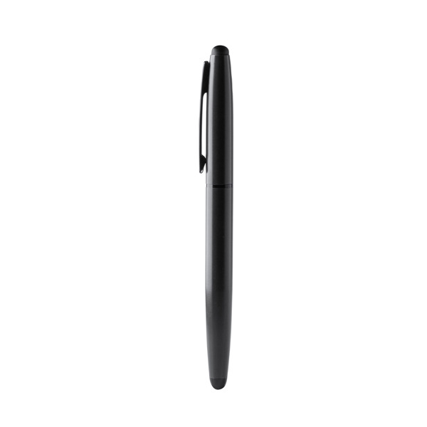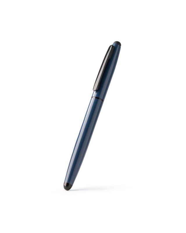 Penna a sfera con corpo arrotondato in alluminio riciclato. Corpo e tappo in tinta. Inoltre, include dettagli e clip neri, oltre a un puntatore touch nero sul tappo. Ricarica jumbo a inchiostro blu. - Composizione: Alluminio riciclato - Misure: 13,5cm/1,1Ø