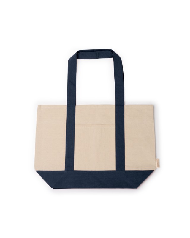 Borsa da spiaggia realizzata in cotone riciclato 280 g/m². Tracolla rinforzata realizzata in cotone in tinta con la borsa. Tracolla da 65 cm. - Composizione: Cotone riciclato 280 g/m². - Misure: 52cm/37cm/15cm