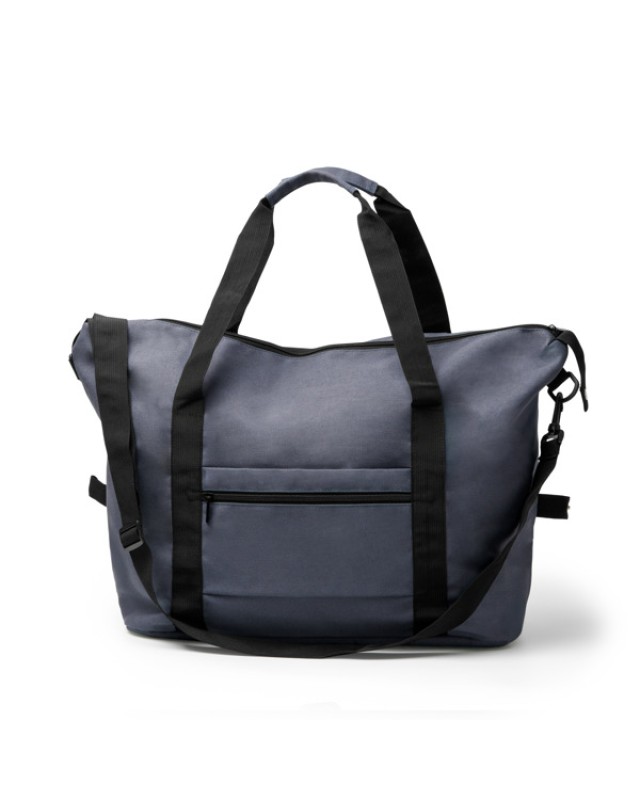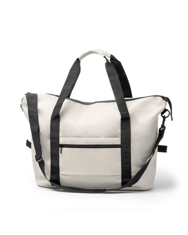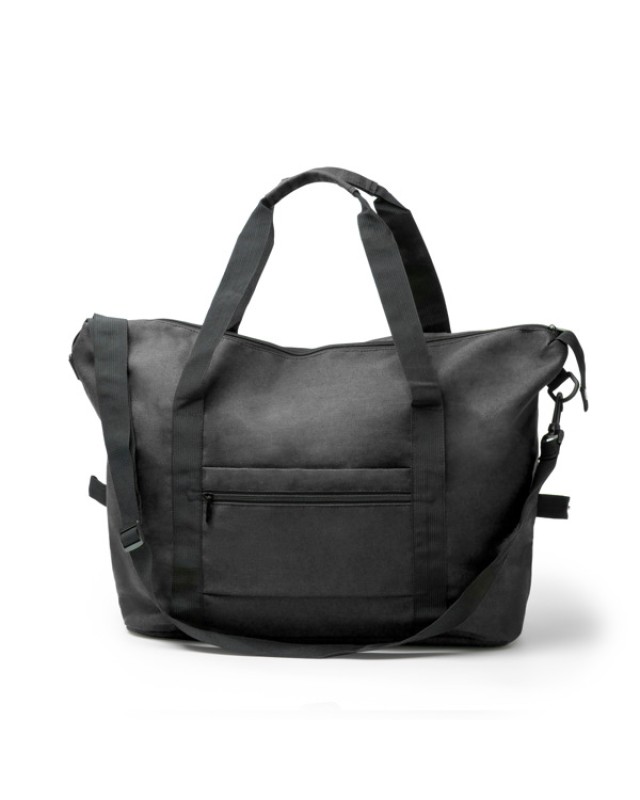 Borsa multiuso in tela di cotone riciclato. Presenta un ampio scomparto principale con una tasca interna con chiusura a zip. Include anche due tasche esterne, una doppia impugnatura con corpo rinforzato e una tracolla regolabile per una maggiore versatilità. - Composizione: Cotone riciclato - Misure: 59cm/39cm/20cm