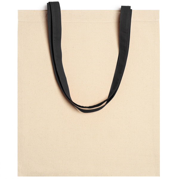 Borsa 100% cotone (140 g/m²) colore naturale con manici colorati da 70 cm. - Composizione: 100% cotone, 140 g/m² - Misure: 41cm/37cm