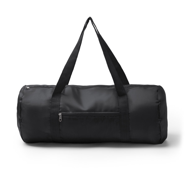 Borsa sportiva pieghevole in RPET 290T. Presenta uno scomparto principale con chiusura a zip. Include una tasca esterna con doppia chiusura a zip per trasportare piccoli oggetti che funge anche da custodia. Dispone di due manici in tinta per il facile trasporto. - Composizione: RPET 290T - Misure: 48cm/23Ø