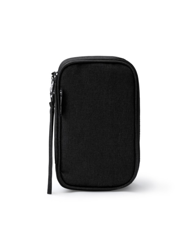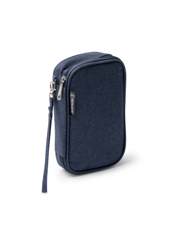 Organizer in RPET, appositamente progettato per riporre e organizzare i cavi. Dispone di uno scomparto in mesh con chiusura a cerniera, uno scomparto principale con chiusura in velcro e uno scomparto intermedio per riporre piccoli oggetti. Include tracolla abbinata. - Composizione: RPET - Misure: 19cm/12cm/4cm