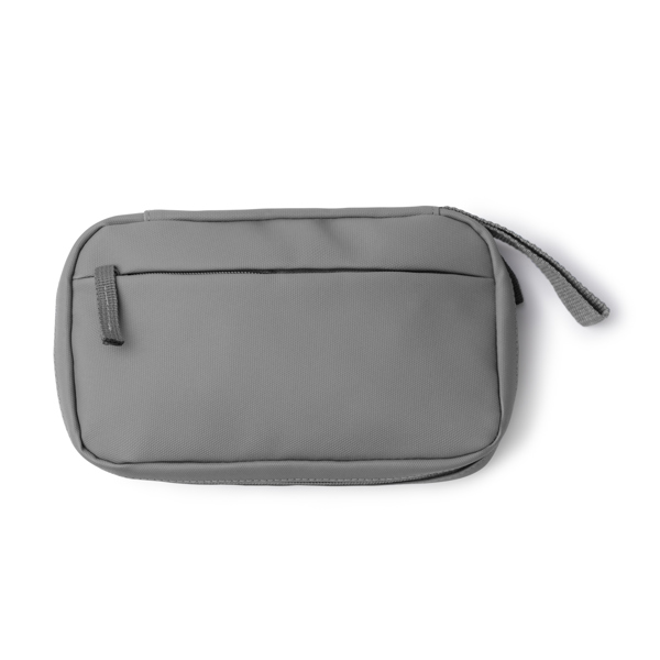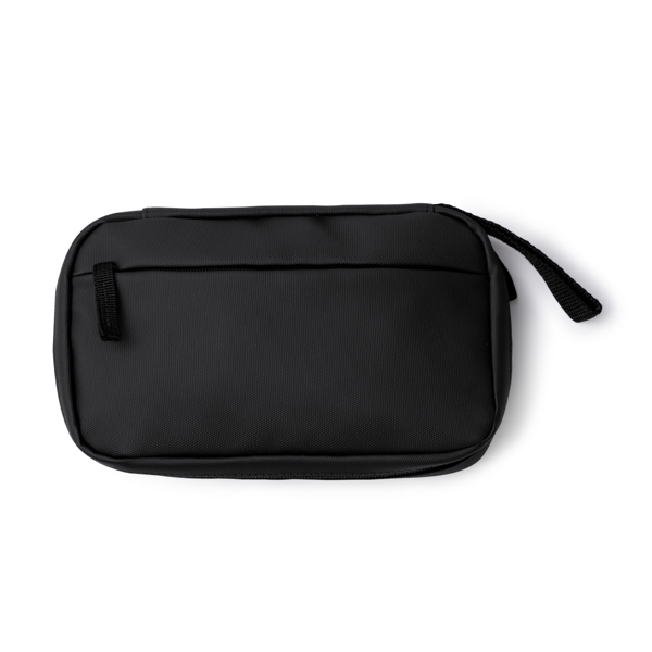 Organizer in poliuretano con zip per apertura totale. Presenta due scomparti interni in mesh: uno con chiusura a zip e l'altro suddiviso in tasche più piccole. Include una tasca frontale con chiusura a cerniera. Le tiralampo delle cerniere e la tracolla per il trasporto sono in tinta con il colore della borsa. - Composizione: Pelle PU - Misure: 22cm/13cm/4cm